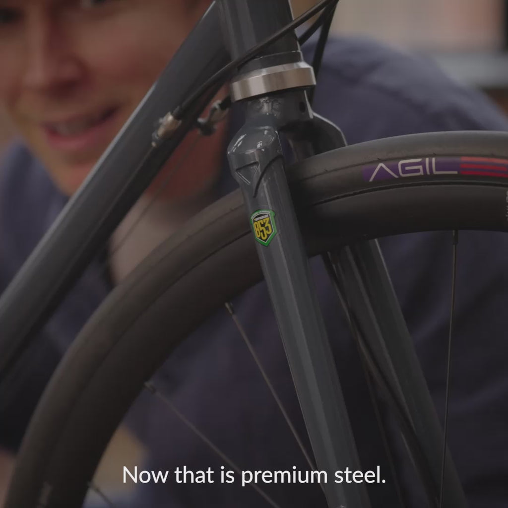 We only use Reynolds steel for our bikes, as it produces strong and lightweight frames. For the Road, we’ve upgraded to Reynolds 853, the highest grade of heat-treated steel for a lightweight, responsive ride. You can head off for miles with confidence, and with the sort of comfort only steel can provide.